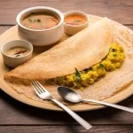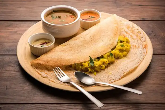 Makanan dosa adalah hidangan khas India yang terkenal dengan tekstur renyah dan rasa gurih, terbuat dari adonan beras dan lentil yang difermentasi.