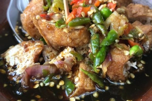 Makanan Tahu Gejrot khas Cirebon ini menawarkan rasa gurih dan segar dari tahu, sambal petis, dan irisan bawang merah, cocok dinikmati sebagai camilan atau pendamping.