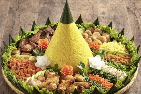 Nikmati kelezatan makanan tumpeng ayam yang khas, dengan nasi kuning berwarna cerah dan lauk ayam gurih, cocok untuk berbagai acara tradisional dan perayaan keluarga.